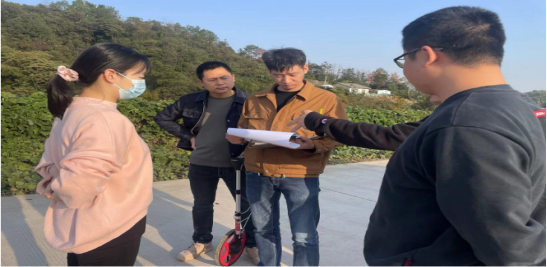 (圖為:對寶林沖安置區(qū)臨時工程現(xiàn)場核量)