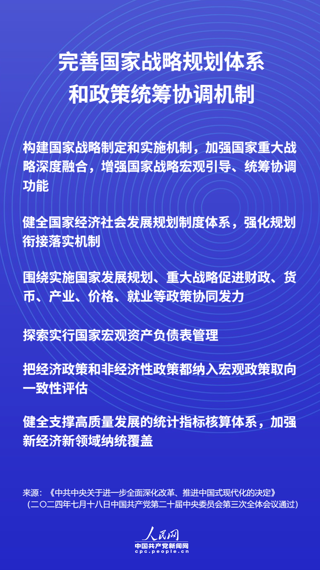 本期主題:黨的二十屆三中全會(huì)審議通過(guò)的《中共中央關(guān)于進(jìn)一步全面深化改革、推進(jìn)中國(guó)式現(xiàn)代化的決定》(以下簡(jiǎn)稱(chēng)《決定》)提出“完善國(guó)家戰(zhàn)略規(guī)劃體系和政策統(tǒng)籌協(xié)調(diào)機(jī)制!边@是發(fā)揮中國(guó)特色社會(huì)主義制度的獨(dú)特優(yōu)勢(shì)、推進(jìn)國(guó)家治理體系和治理能力現(xiàn)代化的重要舉措。