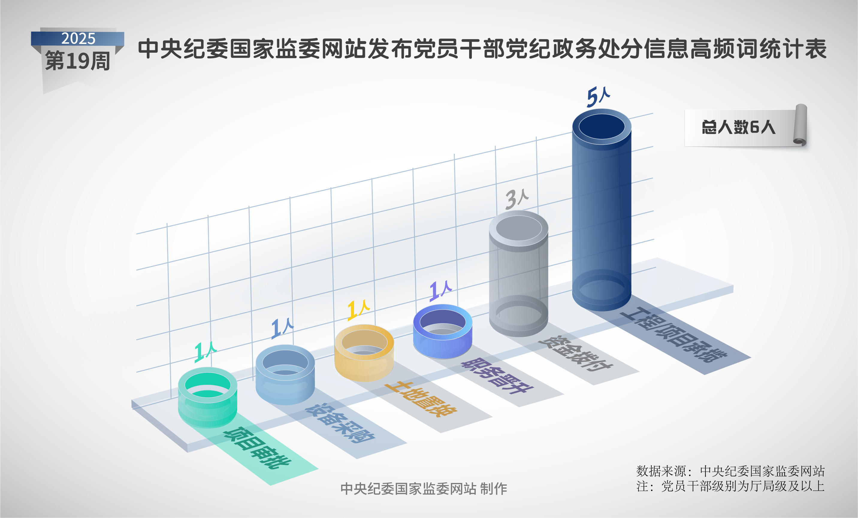 2025年第19周,中央紀委國家監(jiān)委網(wǎng)站共發(fā)布6條黨紀政務(wù)處分信息,均為省管干部。